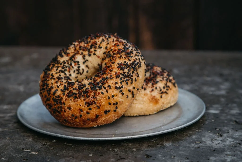 Cold smoked black cod, plain cream cheese, pickled cucumbers, tobiko roe on our plain bagel